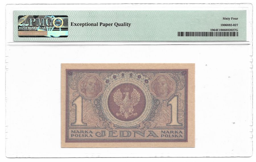 1 marka polska 1919 r. - Seria IAR - Grading PMG 64 EPQ